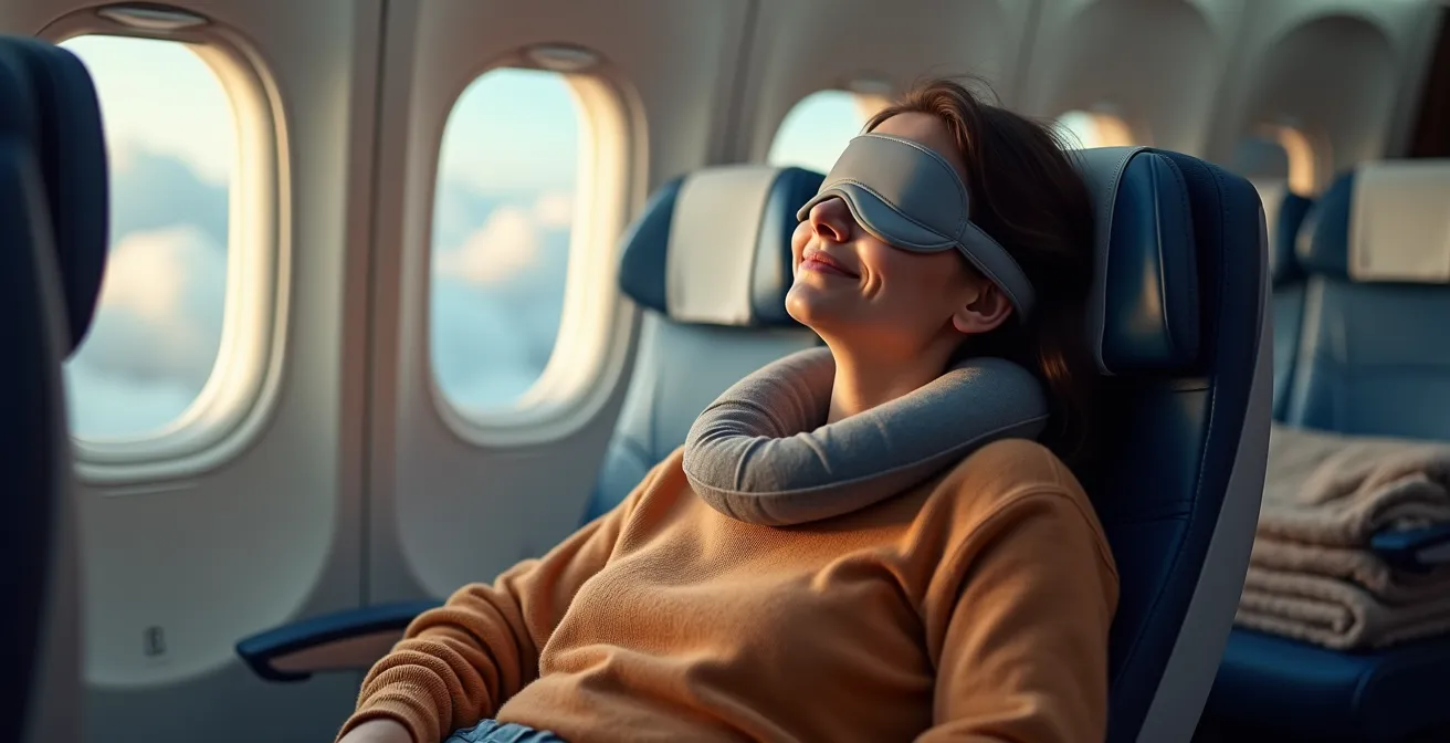 - Gestion de la lumière : Utilisez un masque de sommeil si c’est la nuit à destination. Cherchez la lumière (hublot, liseuse) si c’est le jour. C’est le signal le plus puissant pour votre cerveau.
